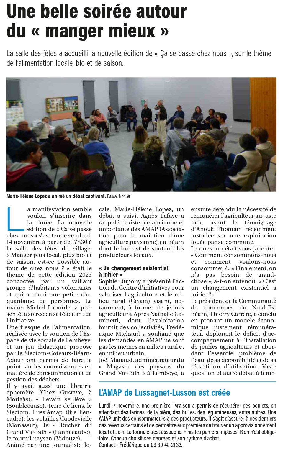 Article paru dans La République des Pyrénées/L’Éclair du 26 novembre 2025